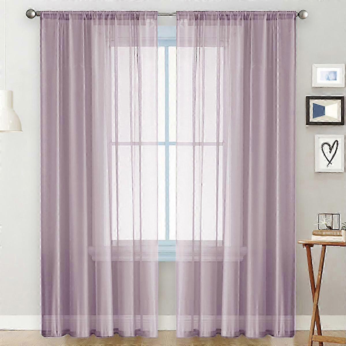 1pc Transparent Sheer Voile Window Curtain Drapes with Top Rod Pocket for Bedroom & Living Room - Light Purple