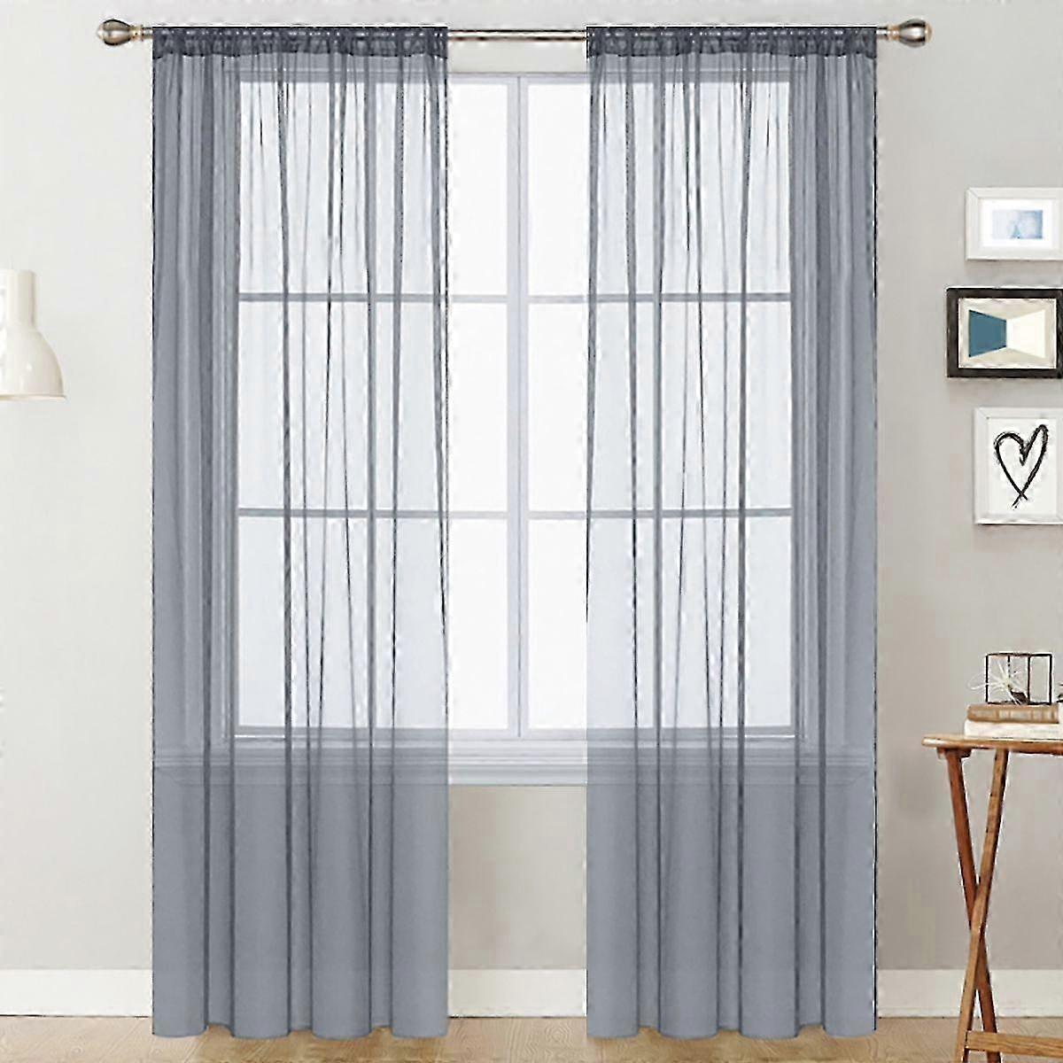 1PC Transparent Sheer Voile Window Curtain Drapes with Top Rod Pocket for Bedroom & Living Room - Gray