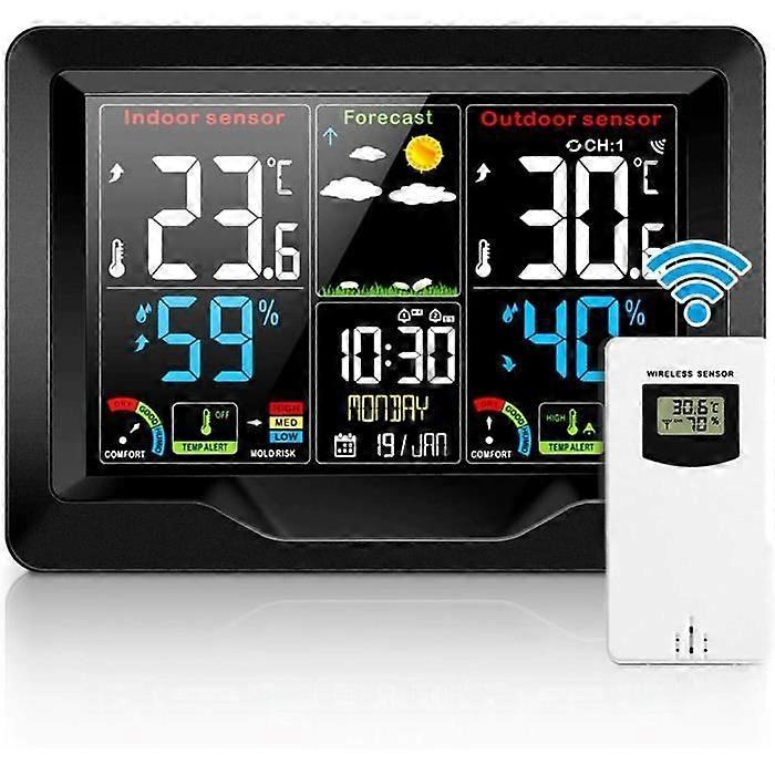 Weather Station Wireless Indoor Outdoor Thermometer and Humidity Monitor with Color LCD Display