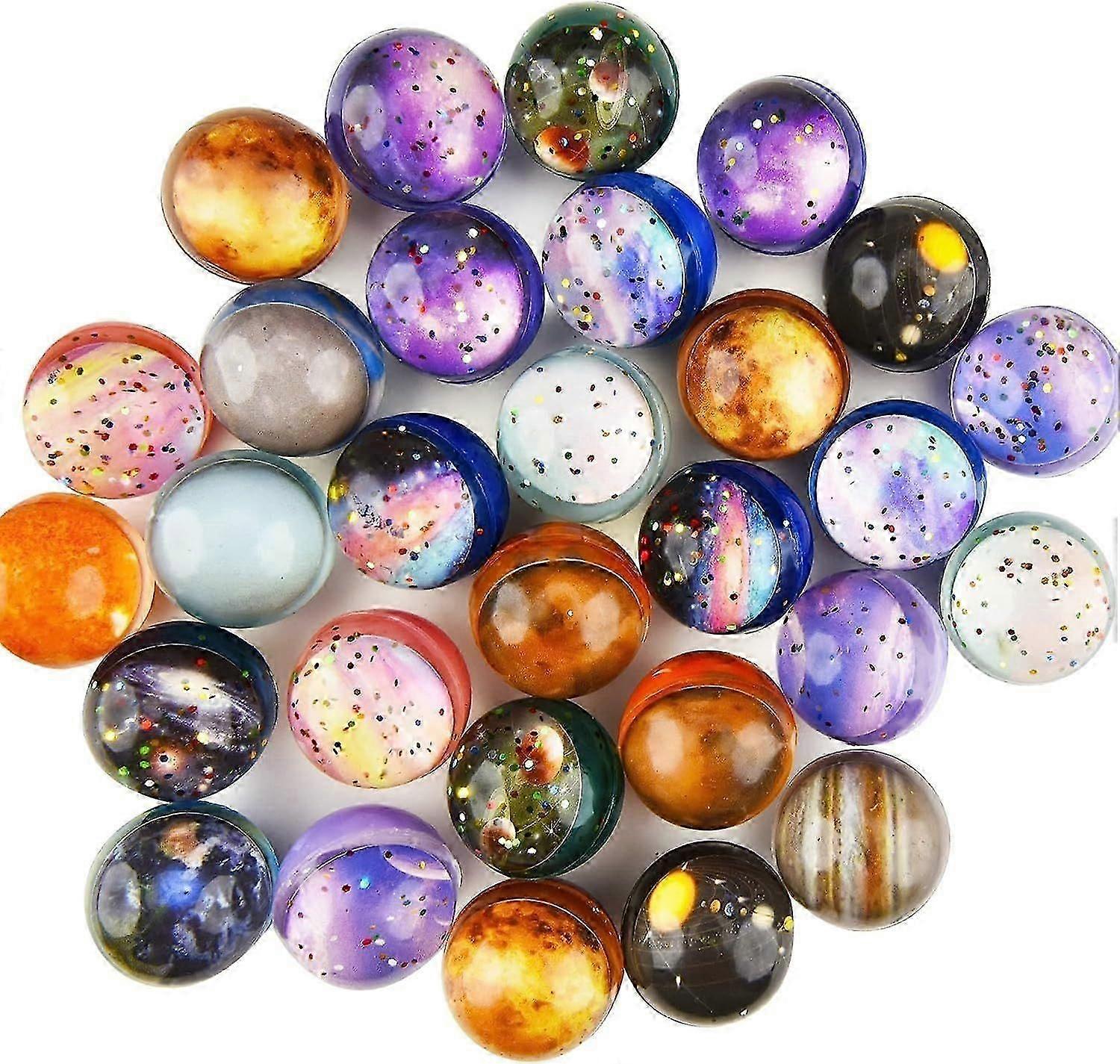 50 Planet Themed Rubber Bouncy Balls 32mm - Popular Birthday Party Favours for UK Children