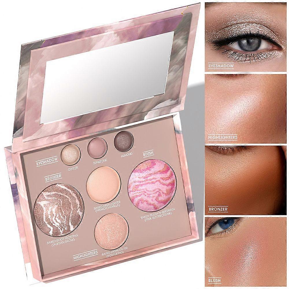 Baked Full Face Makeup Palette with Mirror - Bronzer, Blush, 2 Highlighters & 3 Eyeshadows - Multifunctional Travel Size 7 in 1 Palette Travel & Daily
