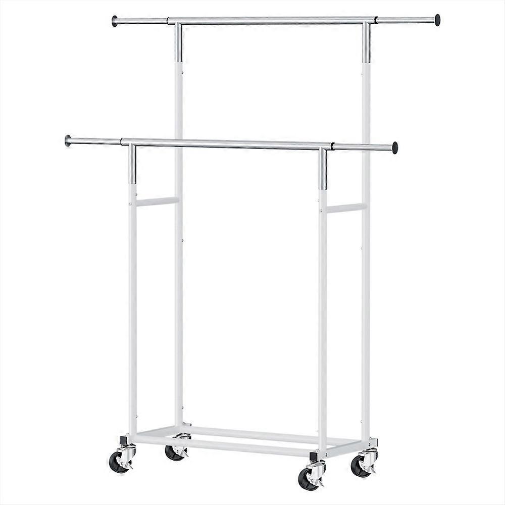 Double Extendable Horizontal Rod For Versatile Hanging Options Heavy-Duty Metal Construction For Strength And Stability Corrosion-Resistant Finish For Long-Lasting Durability Smooth Surface For A Clean Modern Look 360° Swivel Casters For Easy Movement Across Floors 2 Lockable Casters To Keep The Rack Securely In Place Anti-Slip Stoppers For Enhanced Stability 4 Protective plastic Caps To Prevent Wall Scratches Collapsible Design For Easy Under-Bed Or Cupboard Storage Perfect For Rental Spaces Retail Displays Or Daily Home Use Specifications: