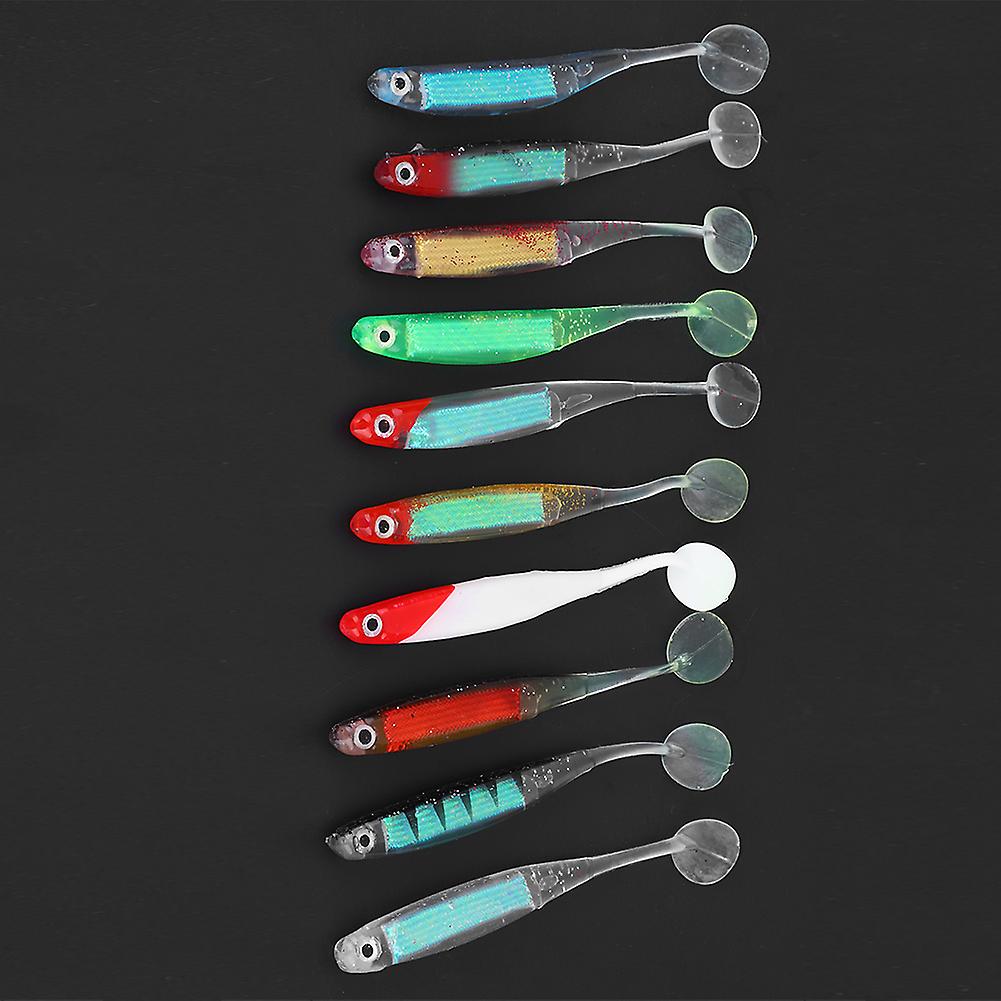 10PCS 10.5cm PVC Soft Fishing Lures with 3D Eyes Colorful T-Tail