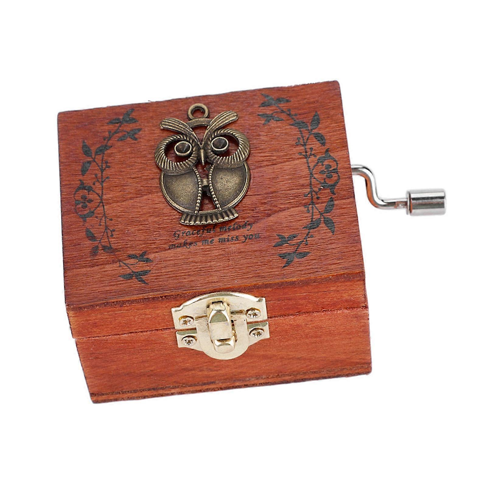 Wooden Hand Crank Owl Music Box 6.5x5.5x4cm Mechanical Gift