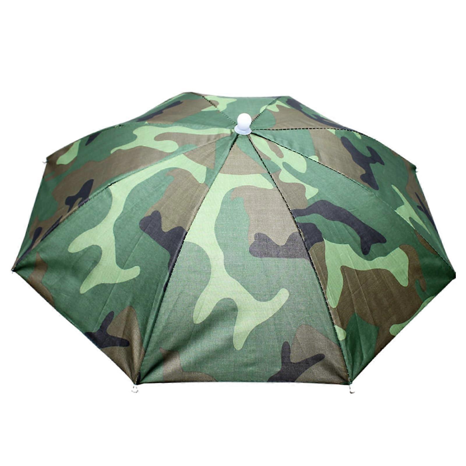 Umbrella Hat for Fishing and Hiking, 55cm Waterproof Sunshade Head Umbrella, Windproof Camouflage Outdoor Hat