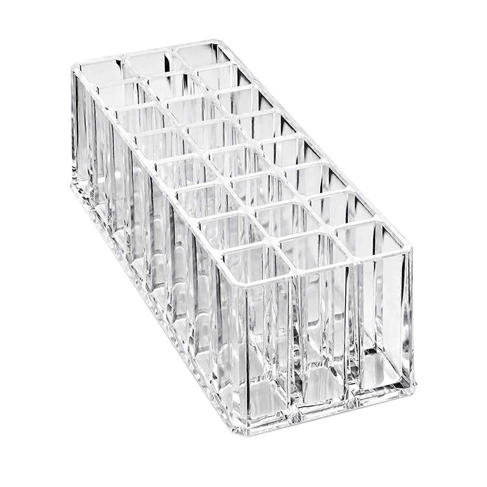 - 24-slot lipstick holder keeps lipsticks neatly organized and easy to access. - Clear material provides at-a-glance visibility, making shade selection fast. - Designed for placing in the bathroom vanity drawer, maximizing space and reducing clutter. - With 24 slots, stores a large number of lipsticks in order and within reach. - Clear design adds a touch of elegance while providing practical storage for your lipsticks. Use scenarios - Daily routine: keep your go-to shades in one place for quick selection during morning prep. - Small spaces: fits inside a bathroom vanity drawer to maximize storage and keep items neatly tucked away. - Professional setting: organize a large lipstick collection for clients in a makeup studio or beauty room.