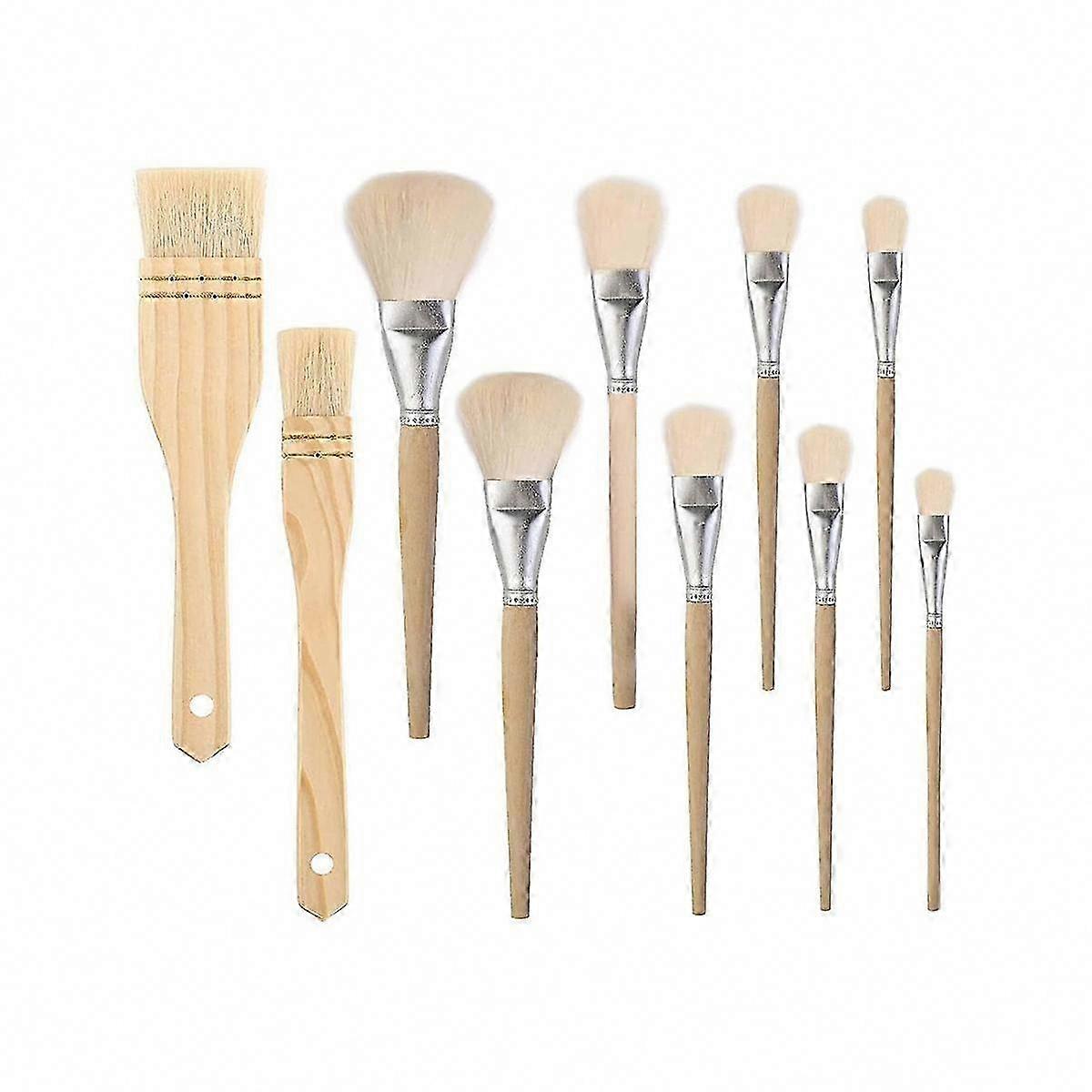 10 PCS Assorted Size Paint Brushes for Watercolor, Wash, Ceramic - Gilding, Hair Duster, Flat, Sweep Mops