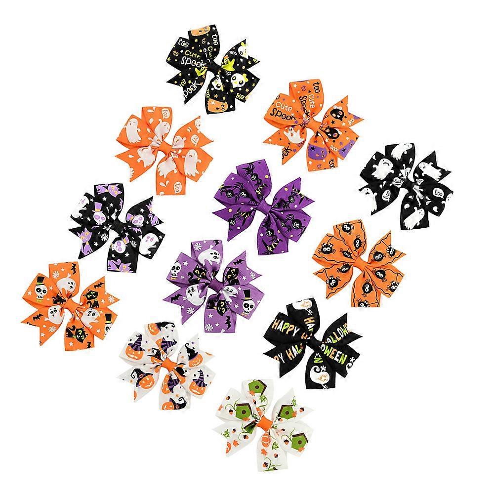 Halloween Party Bow Hairpin Headdress for Girls Assorted Color Polyester Hair Decoration 12Pcs
