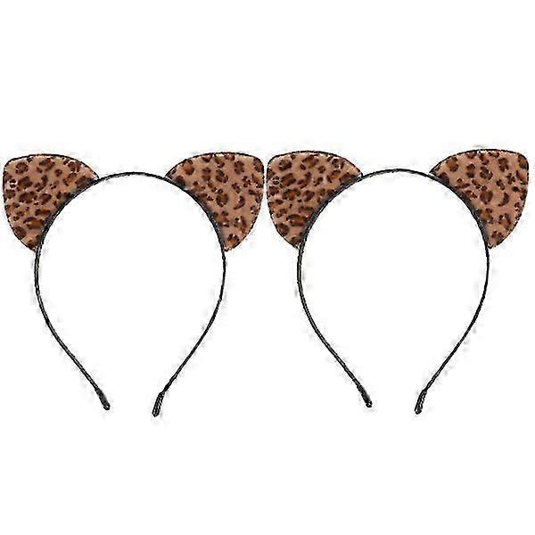 2Pcs Leopard Cat Ear Headbands for Cosplay Party Hair Accessories