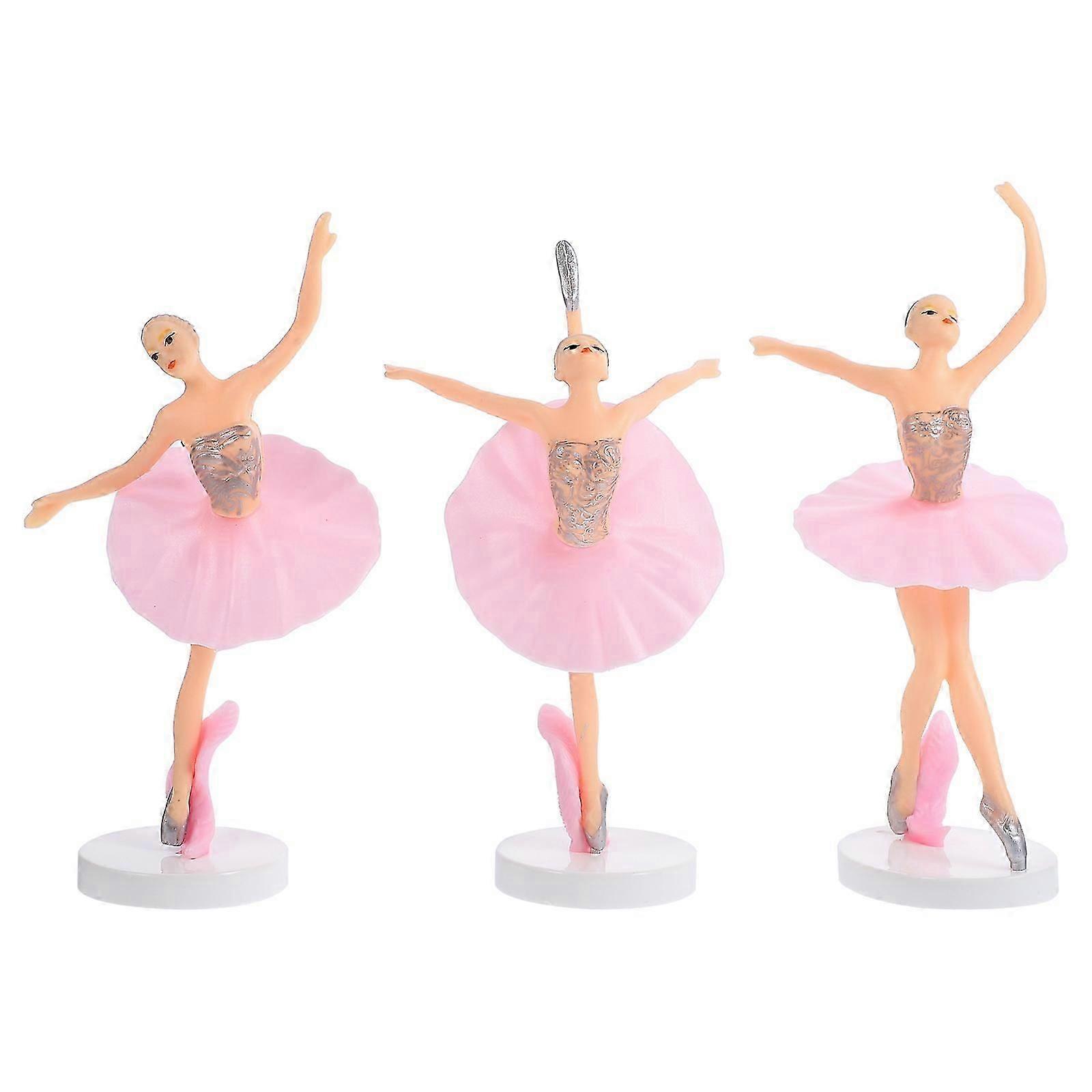 Elegant Ballerina Statue Dancing Girl Home Use Pink 14.50x6.00x6.00cm 3pcs