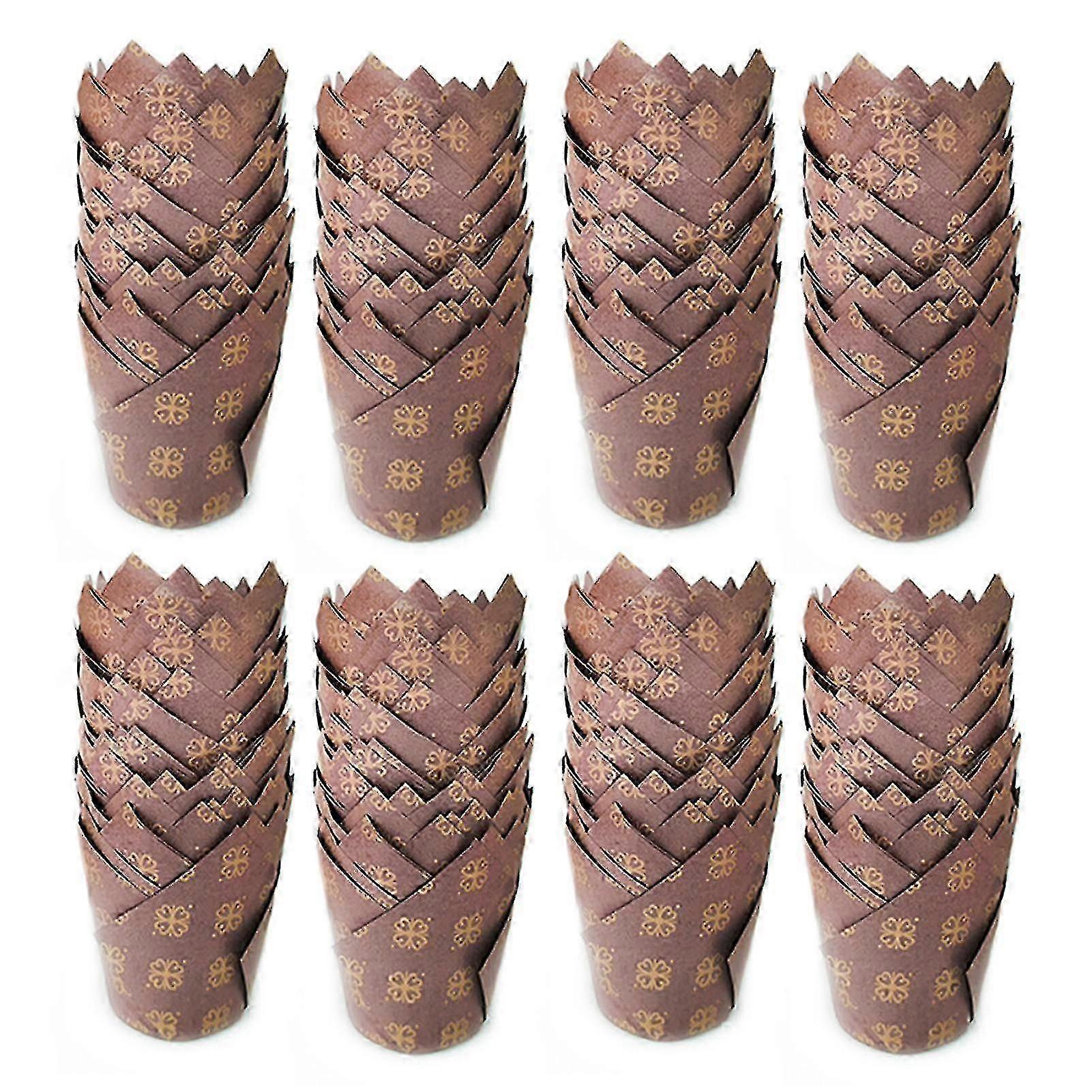 200-Pack Eucalyptus Leaf Design Cupcake Wrappers - Heat-Resistant Tulip Cups for Wedding Parties