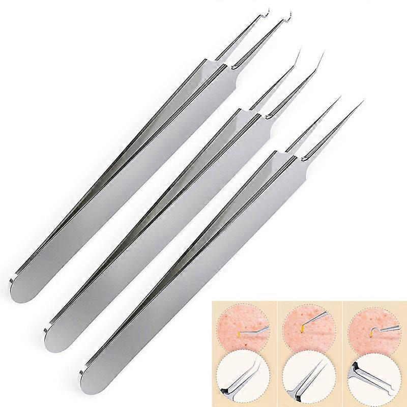 3 Pcs Stainless Steel Blackhead Remover Tweezers Professional Comedone Extractor