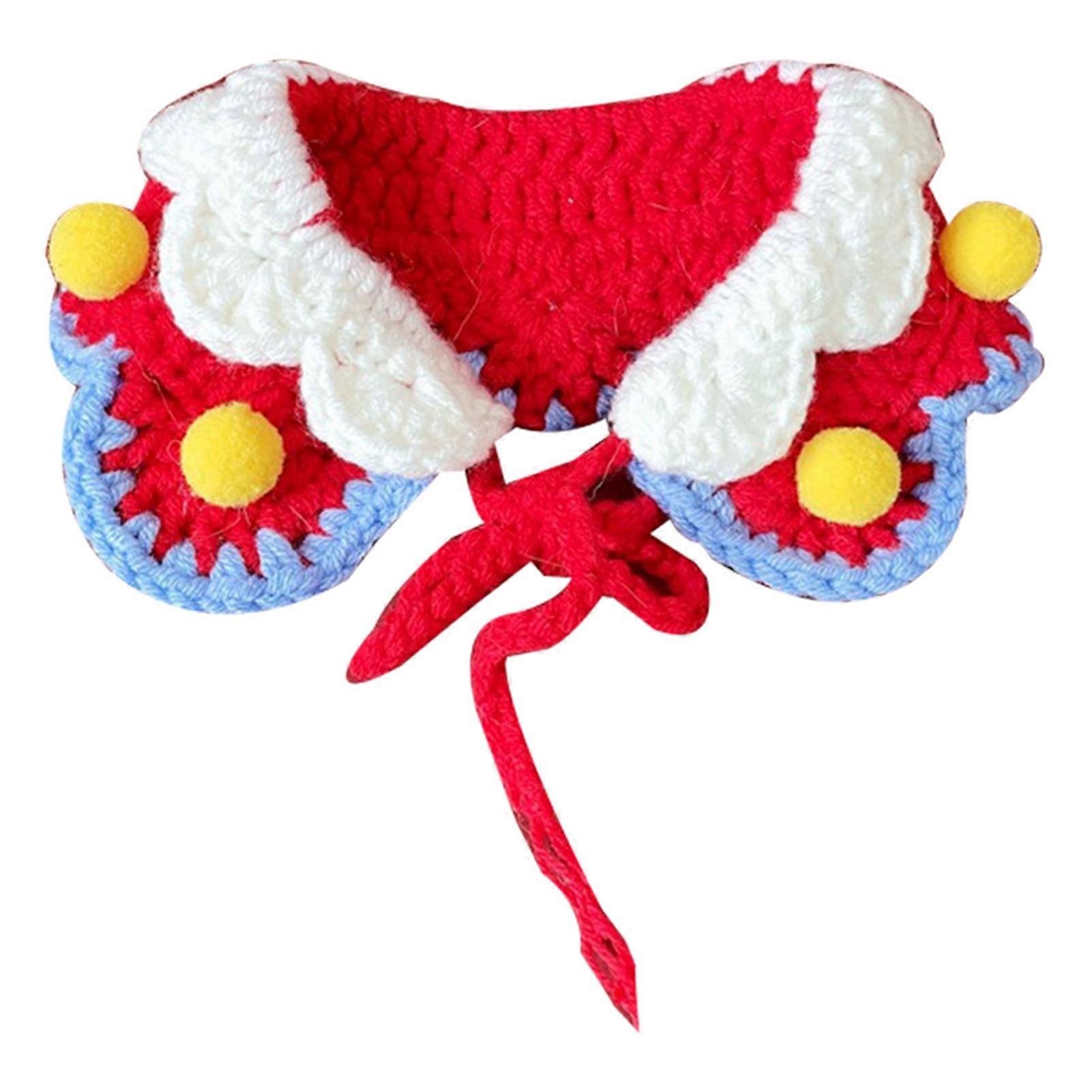 GPB Pet Christmas Scarf Handcrafted Knitted Warm Comfortable Dog Winter Scarf for Cats Puppy Red Double Collar M