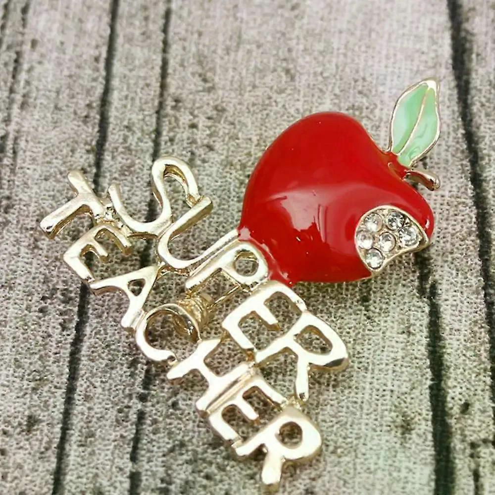 Brooch Badge Pin Gift Apple Super Teacher Rhineston Inlaid Christmas Teacher Day Gift