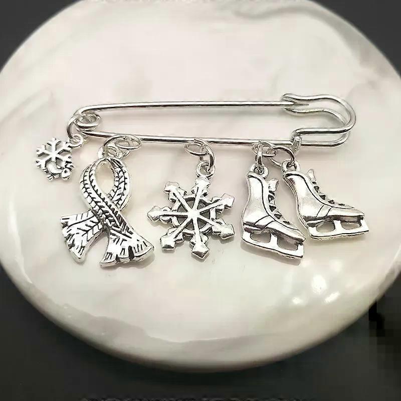 Red and white skateboard shoes enamel brooch snowflake scarf clip proud ice skate brooch boy and girl jewelry gift