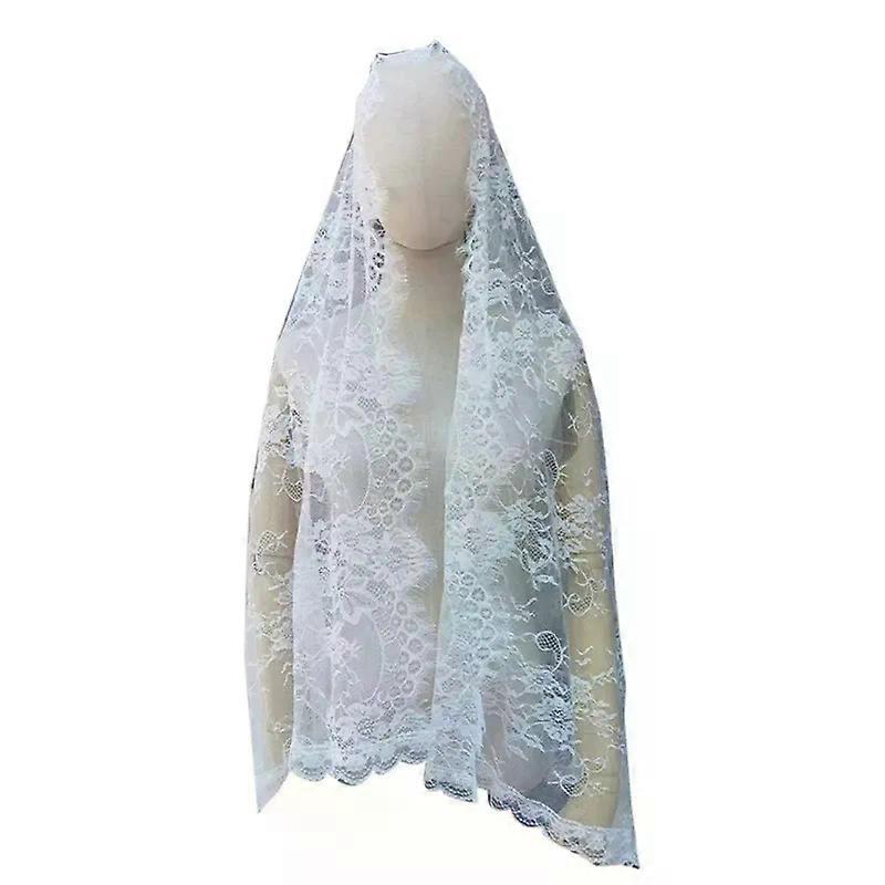 Lace Border Bridal Veil Halloween Make Up Mantilla Length Appliques Elegant Veil for Catholic Prayer Service