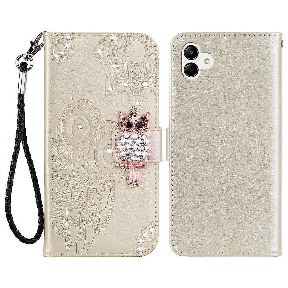 For Samsung Galaxy A07 4G Wallet Case Owl Flower Imprinted Rhinestone Leather Cover
