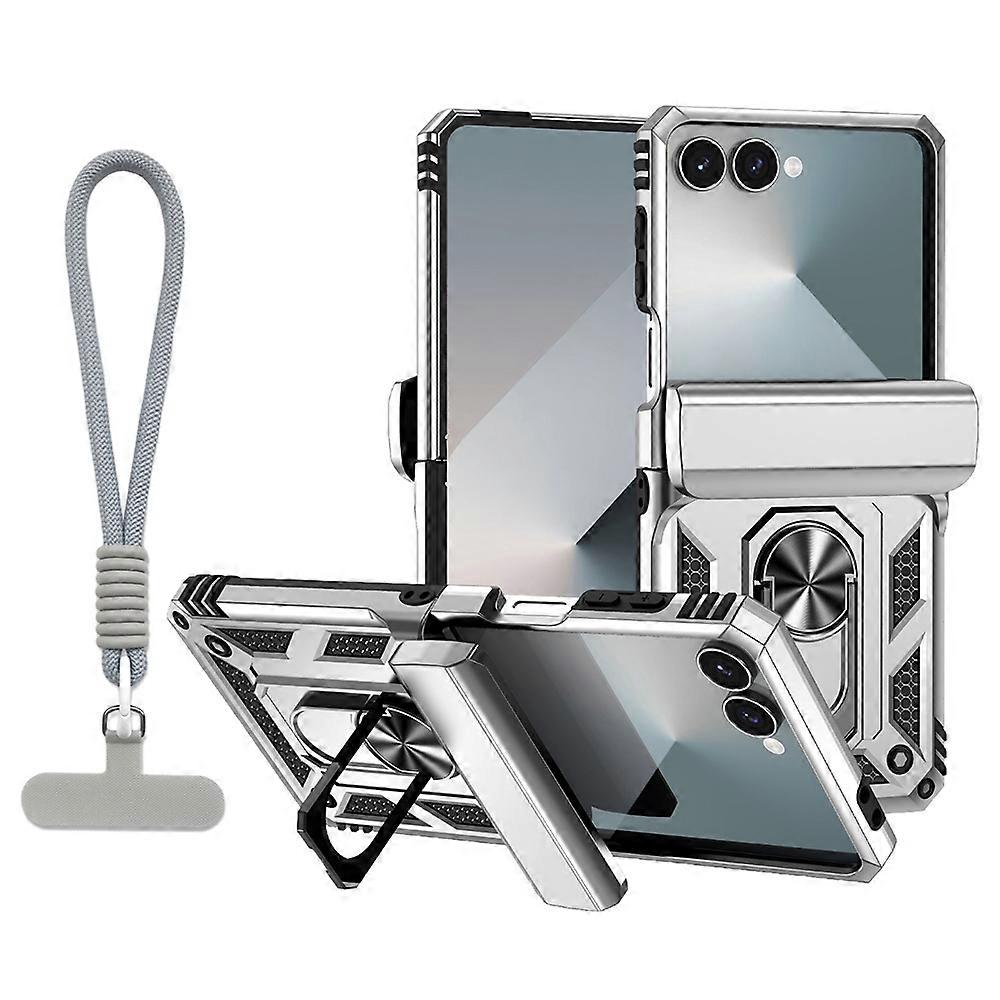 For Samsung Galaxy Z Flip7 5G Case with Wrist Strap Kickstand Hinge Protection PC TPU Phone Cover