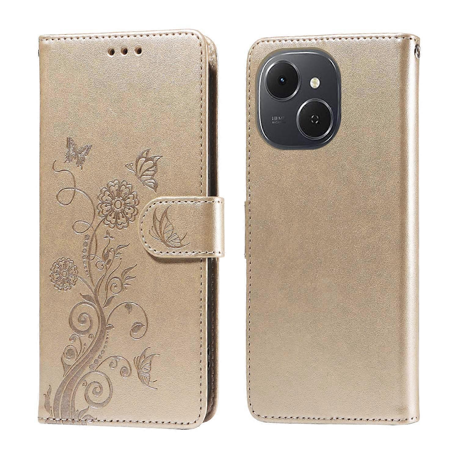 For TECNO Spark 40C Leather Case Butterfly Floral Imprint Wallet Stand Cover