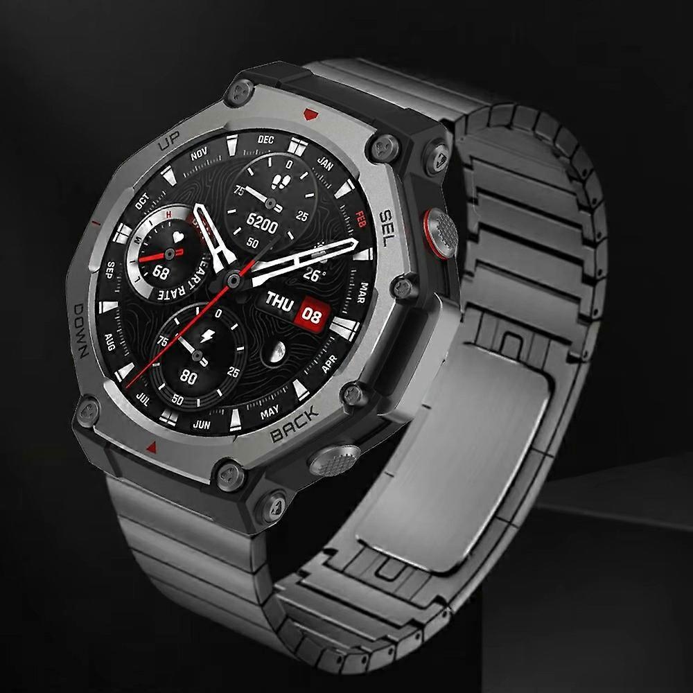 For Huami Amazfit T-Rex 3 A2322 Watch Band 1-Bead Stainless Steel Wrist Band