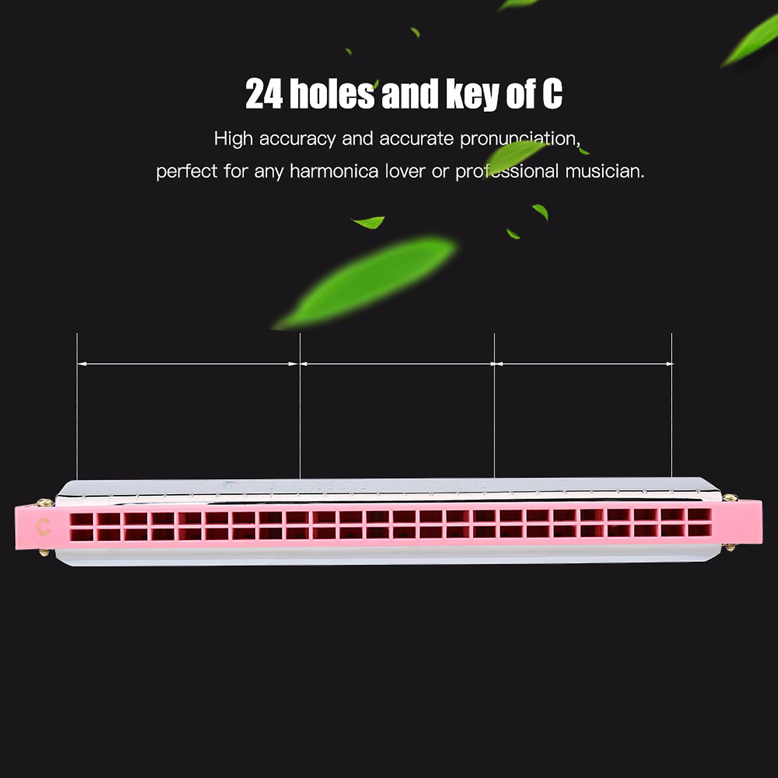 24-Hole Key of C Metal Harmonica for Kids Pink 7.09x1.18x0.79in