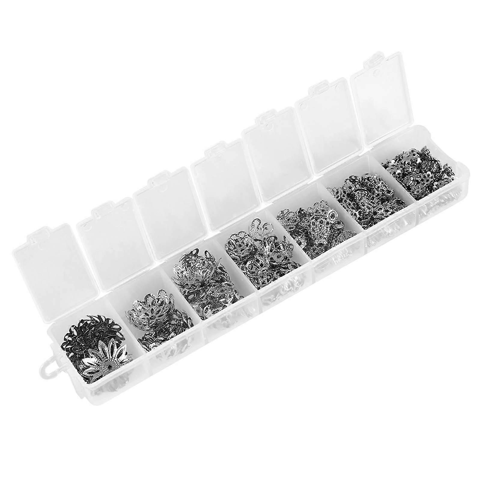 300pcs Silver Flower Spacer Caps 7 Sizes 6-16mm Jewelry Making