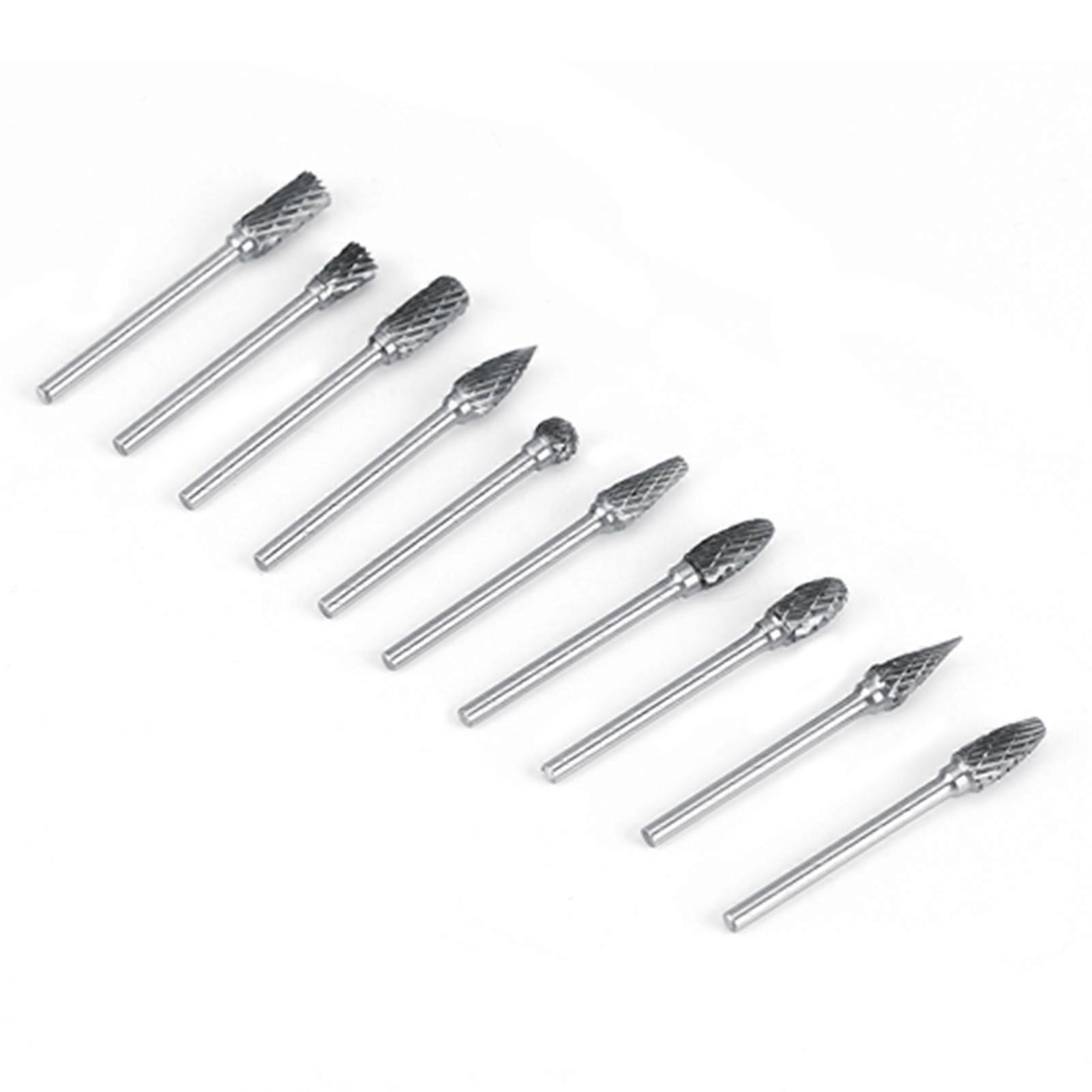 10pcs 3mm Shank Tungsten Carbide Rotary Burr Set, 6mm Cut