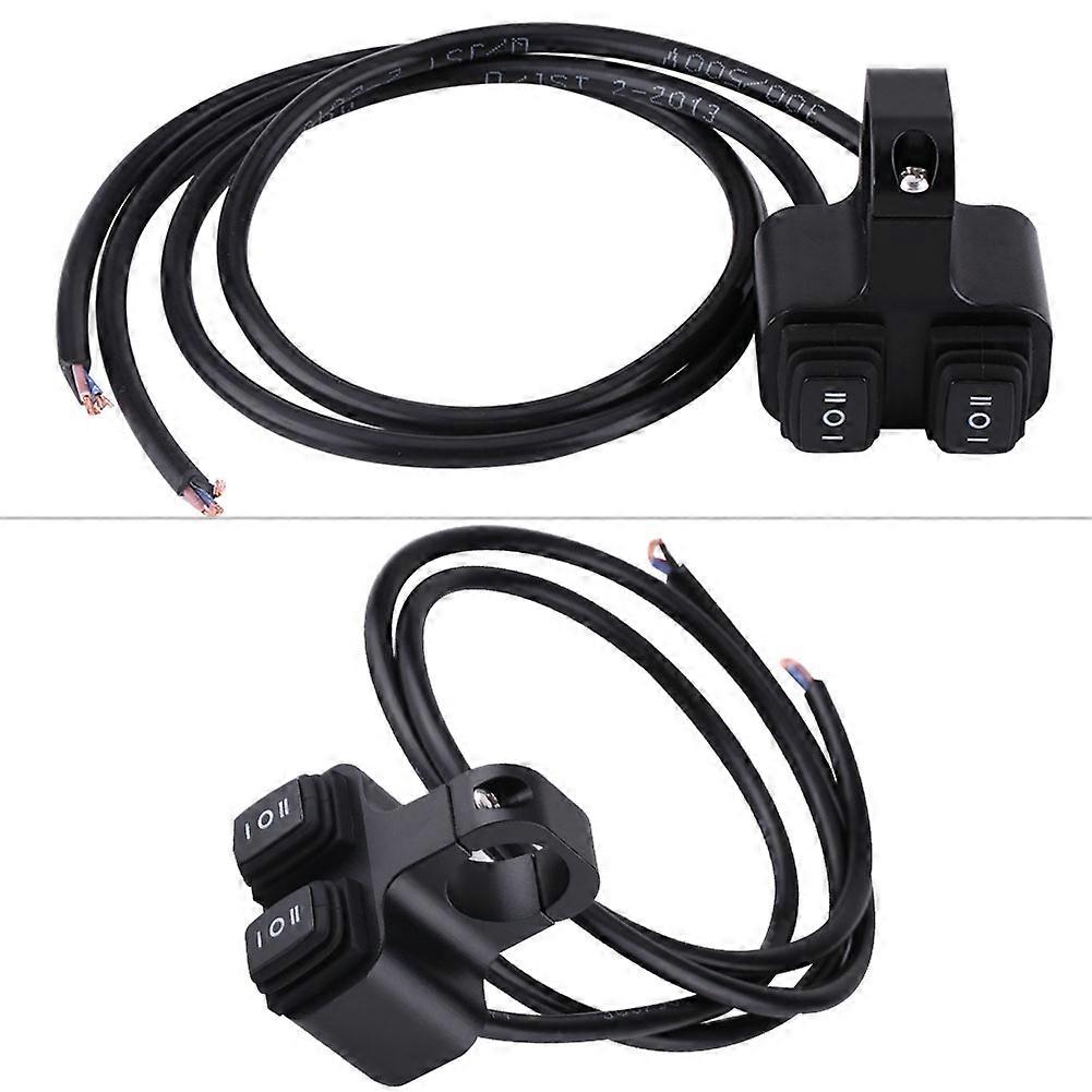 CNC Aluminum Alloy Motorcycle Handlebar Mount Headlight Spotlight 3 Way On/Off Dual Switch Features: Motorcycle headlight spotlight on or off button dual switch mounted on the handlebar. With this switch, it is easy to control the light condition while riding. 3 way 3 gear switch for convenient and practical operation. Universal fit for most of motorcycles, motorbikes with 7/8inch diameter handlebar. Made of premium plastic shell, it is weatherproof and very durable in using. A good replacement for the old and broken one. Specifications: Condition: Switch Type: 3 Way 3 Gear Material: Plastic, CNC Aluminum Alloy Main Color: Black Current: 16A Load Power: 192W*2 Suitable Handlebar Diameter: 22-23mm (7/8inch) Size: Approx. 25 * 35mm / 0.98 * 1.37in Wire Length: Approx. 50cm / 19.68in Wire Connection: Blue wire for positive pole, brown wire for negative, black wire for devices Fitment: Universal fit for most of motorcycles, motorbikes with 7/8inch diameter handlebar Weight: Approx. 165g Package Included: 1 * Motorcycle Handlebar Mount Switch Notes: 1. Easy to install, but wiring modification might be needed, and professional installation is highly recommended. 2. Please check your handlebar diameter to ensure this item can match before ordering. 3. Please allow 0~1 inch error due to manual measurement. Thanks for your understanding.