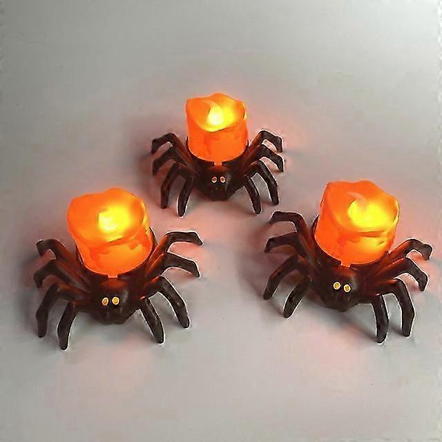 Halloween Tea Light Black Spider Candle,Flameless Battery Operated LED Tealight,Small Pumpkin Light for Halloween Spooky Decor Battery: AG10 button battery*3 (not included)