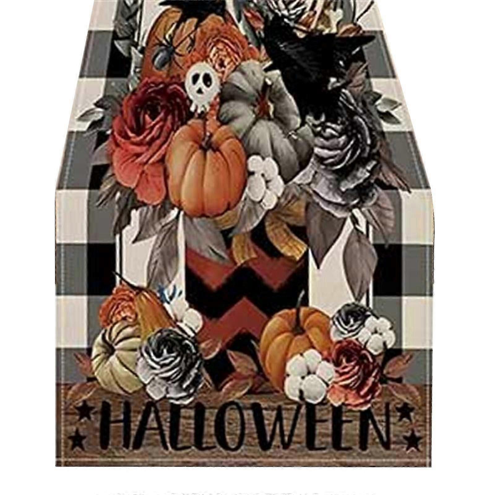 New Halloween Linen Table Flag Pumpkin Skull Printed Tablecloth Holiday Party Decoration Tablecloth Tea FlagFeatures:Material: Made of polyester material, uniquely designed with bright pumpkin and skull patterns, presenting an elegant and bizarre festive feeling, it is an ideal decoration for party tabletops.Theme: With Halloween as the theme, the tablecloth is printed with pumpkin and skull patterns, with bright colors, bringing unique joyful to the holiday party.Party decoration: including various such as table flags, tablecloths, and tablecloths, specially designed as decorations to create a Halloween feeling. These decorative items add festive lively and mystery to the celebration through the selection of colors and patterns.Decorative fabric used to cover desktops or service desks, commonly used in holiday parties or celebration events, and paired with other decorations to perfectly showcase holiday themes.Tea flags combine from different cultures or regions, showcasing variety designs and profound cultural connotations, making them suitable for international exhibitions or cultural exchange activities.Product Description:Product Description:Material: PolyesterWeight: 110gSize: 33 * 183cmThe product includes1*desk cover