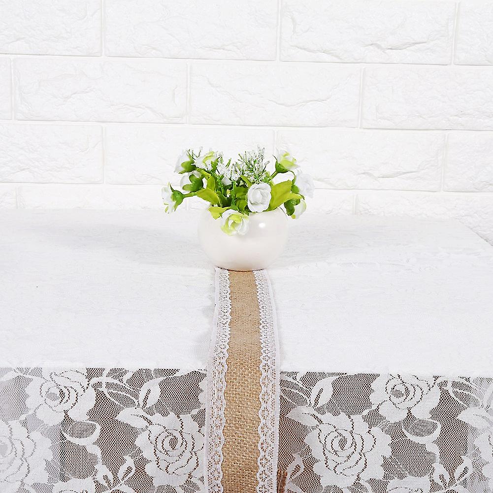 Natural Jute Burlap Ribbon 2m with White Lace 5cm Rustic Decor