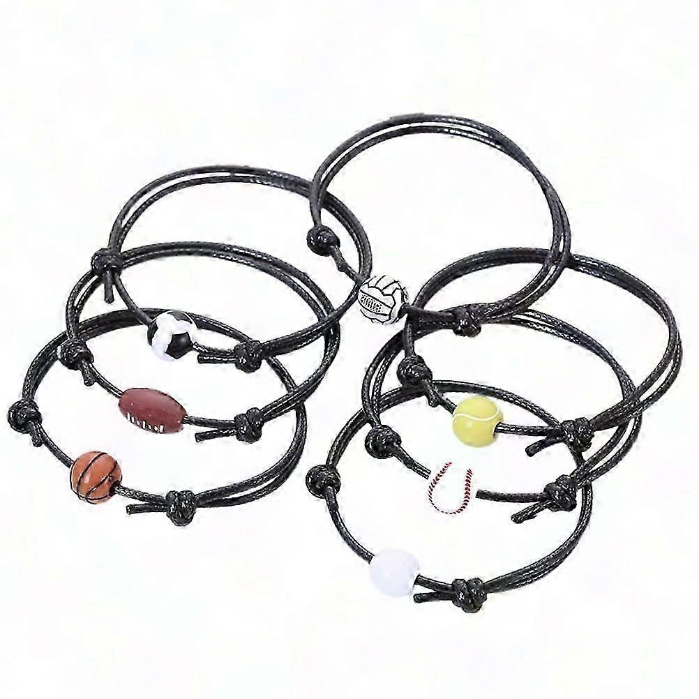 7pcs Sports Ball Bracelet Set - Basketball Soccer Volleyball Rugby Baseball Tennis Beads, Adjustable Inspirational Sports Wristbands