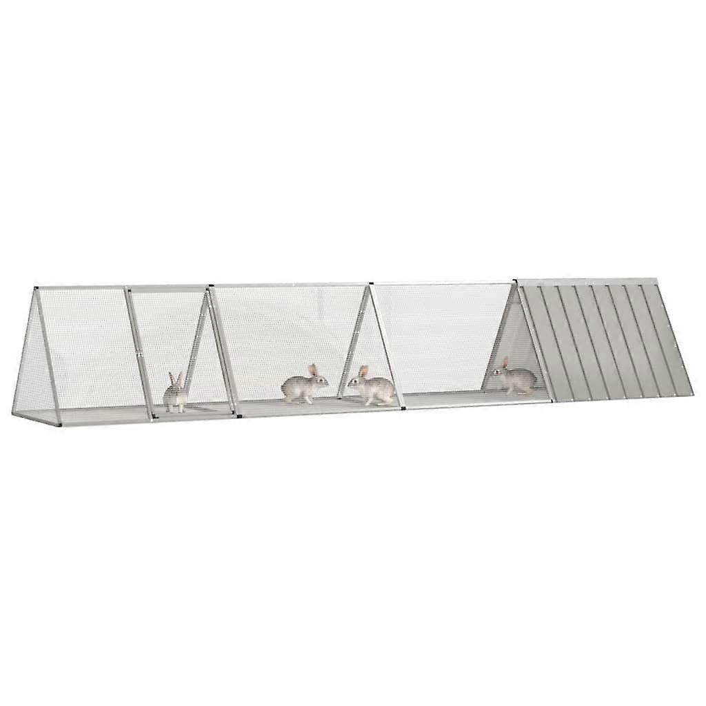 Rabbit Cage Grey 403.5X80.5X71 Cm Galvanised Steel Small Animal Cages & Hutches