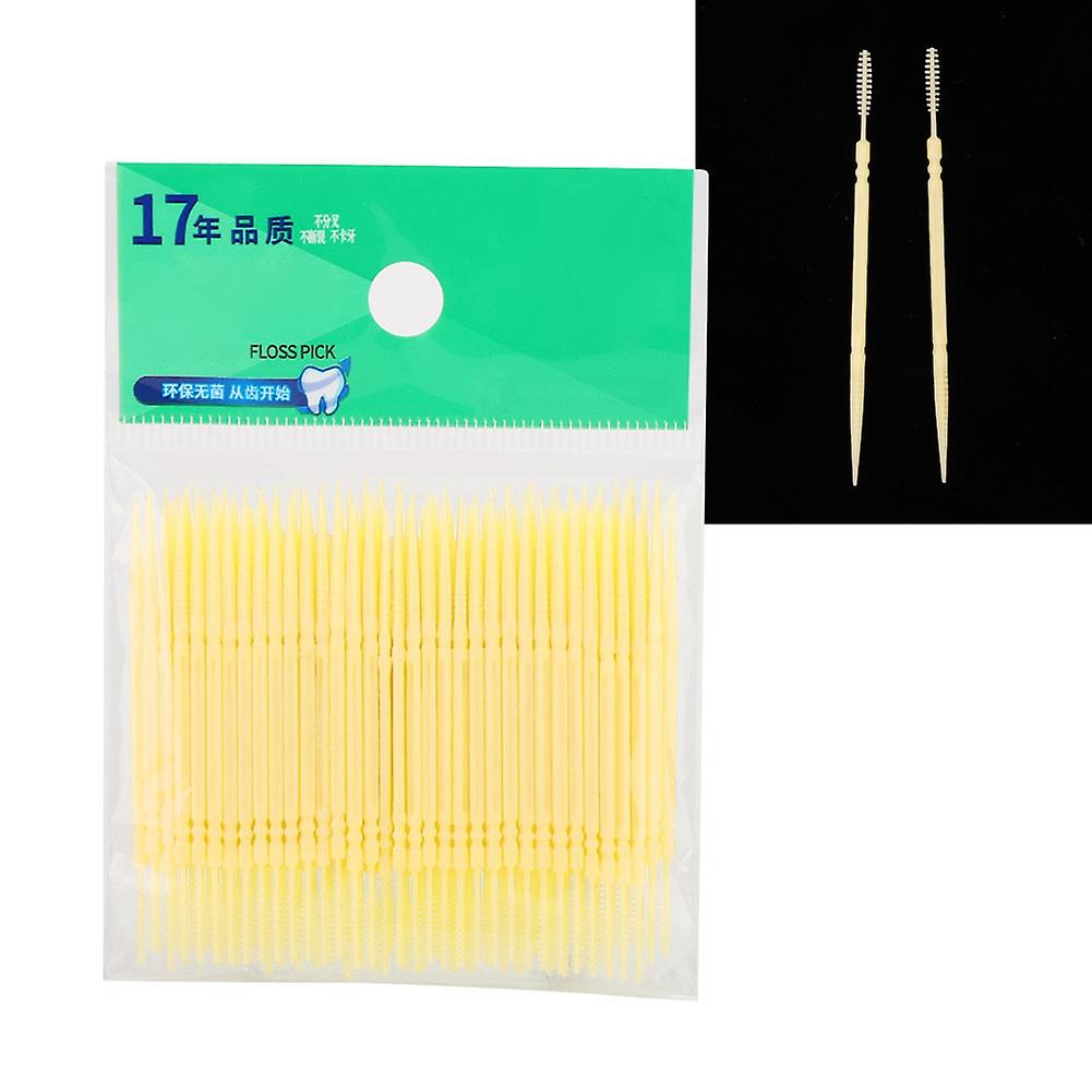 100pcs Double Head Yellow Toothpick Oral Care Floss Picks