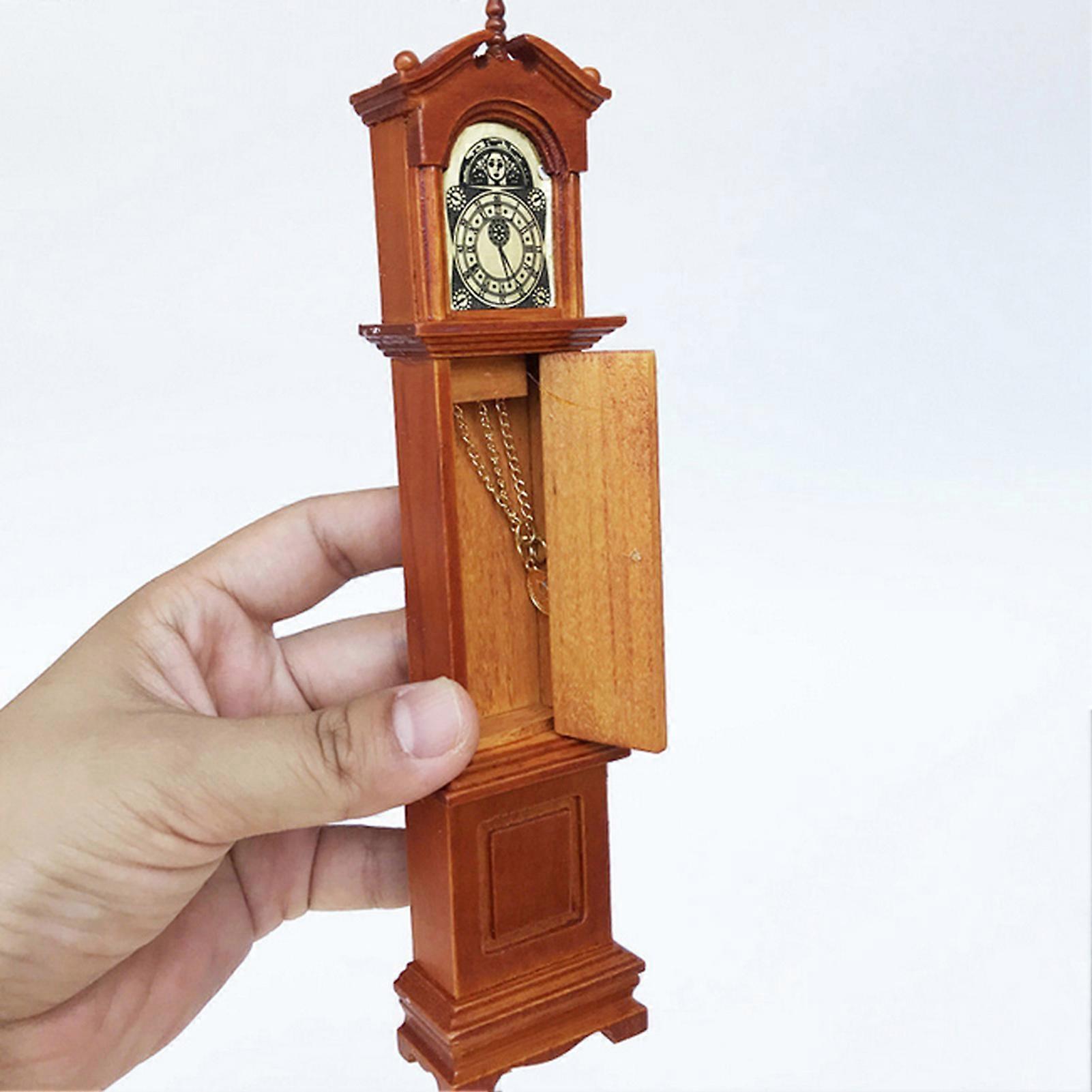 Vintage 1:12 Scale Wooden Floor Clock for Mini Dollhouse Decor