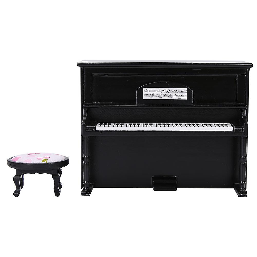 1:12 Scale Mini Black Wooden Upright Piano with Stool, 13x5.5x9.8cm