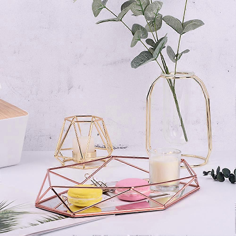 Gold Bathroom Sexangle Jewelry Organizer Tray 27.5x18.5x4cm