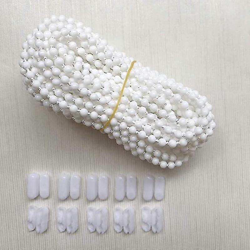 Usage: Suitable for roller blinds, roman blinds, vertical blinds, honeycomb blinds, and venetian blinds Size: 4.5 x 6mm. Bead diameter: 4.5mm; cord diameter: 1.8mm; spacing between beads: 6mm; 100mm chain contains 17 plastic beads Length: 10 meters, sufficient for multiple blinds Color and material: White plastic bead chain with plastic connectors Package includes: 10 meters of plastic bead chain for blinds and shades Function: 1. Product name: Plastic bead chain for blinds and shades 2. Dimensions: 4.5 x 6mm 3. Material: Plastic 4. Chain length: 10 meters 5. Color: White Application: 1. Compatible with roller blinds, Venetian shades, honeycomb shades, vertical shades, and Roman shades 2. Features high-quality plastic chain connectors and chain links Contents: 10 meters of bead chain and 10 bead chain connectors