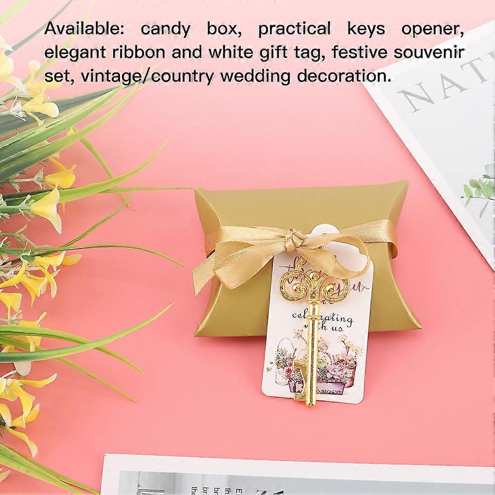 50pcs Gold Keys Bottle Opener Set with Silk Ribbon & Gift Tags