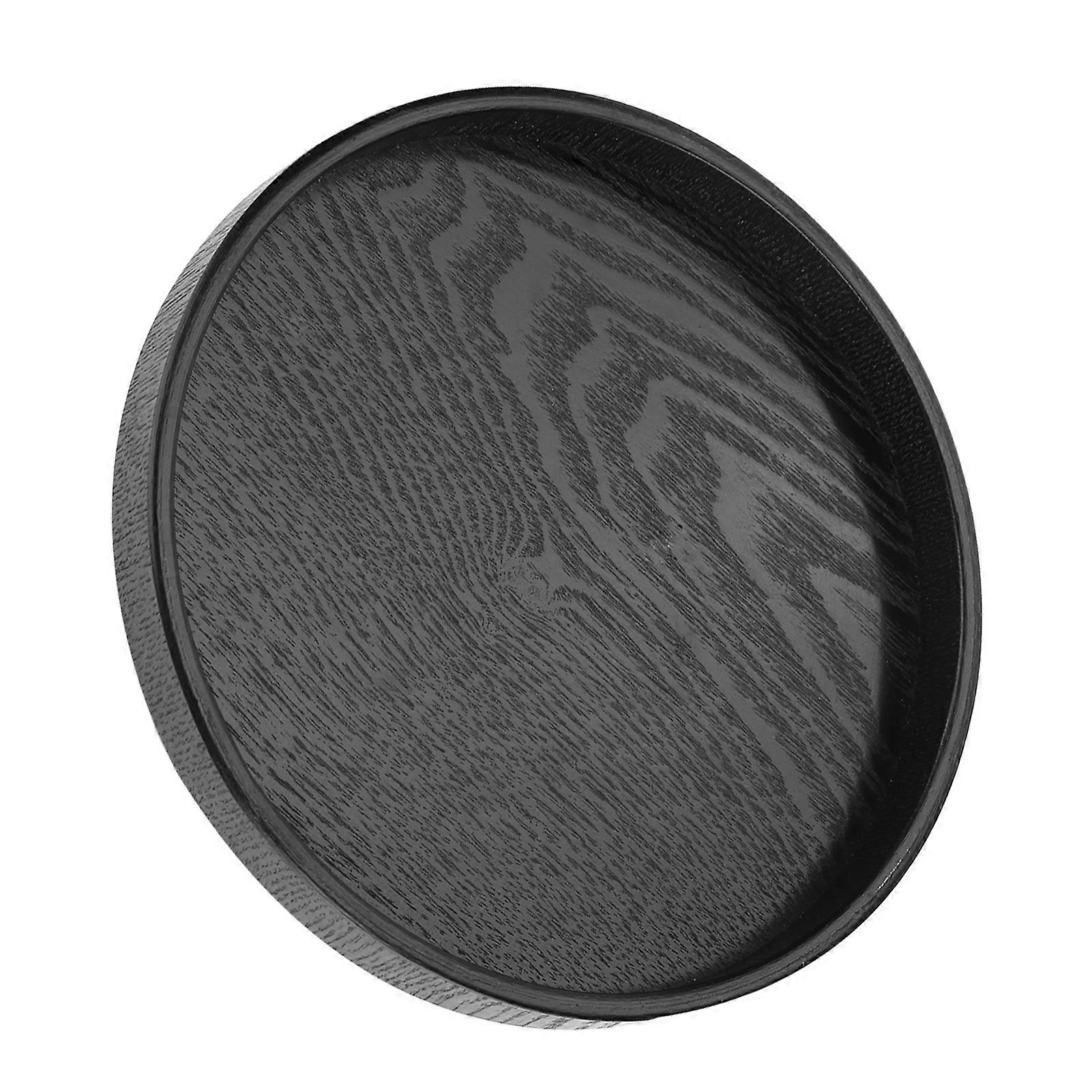Round Solid Wood Tea Tray Plate 27cm Black Durable Serving