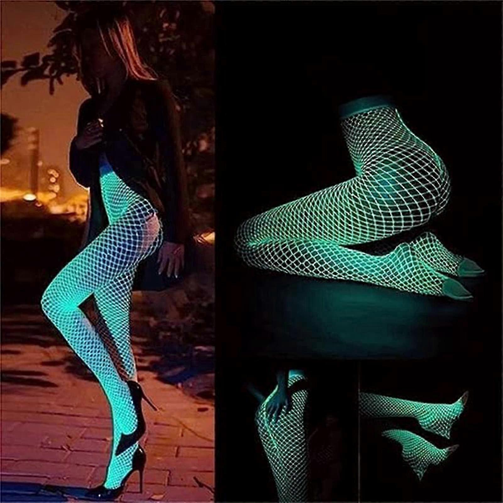 Luminous White Fishnet Tights for Women - Glow in Dark, One Size