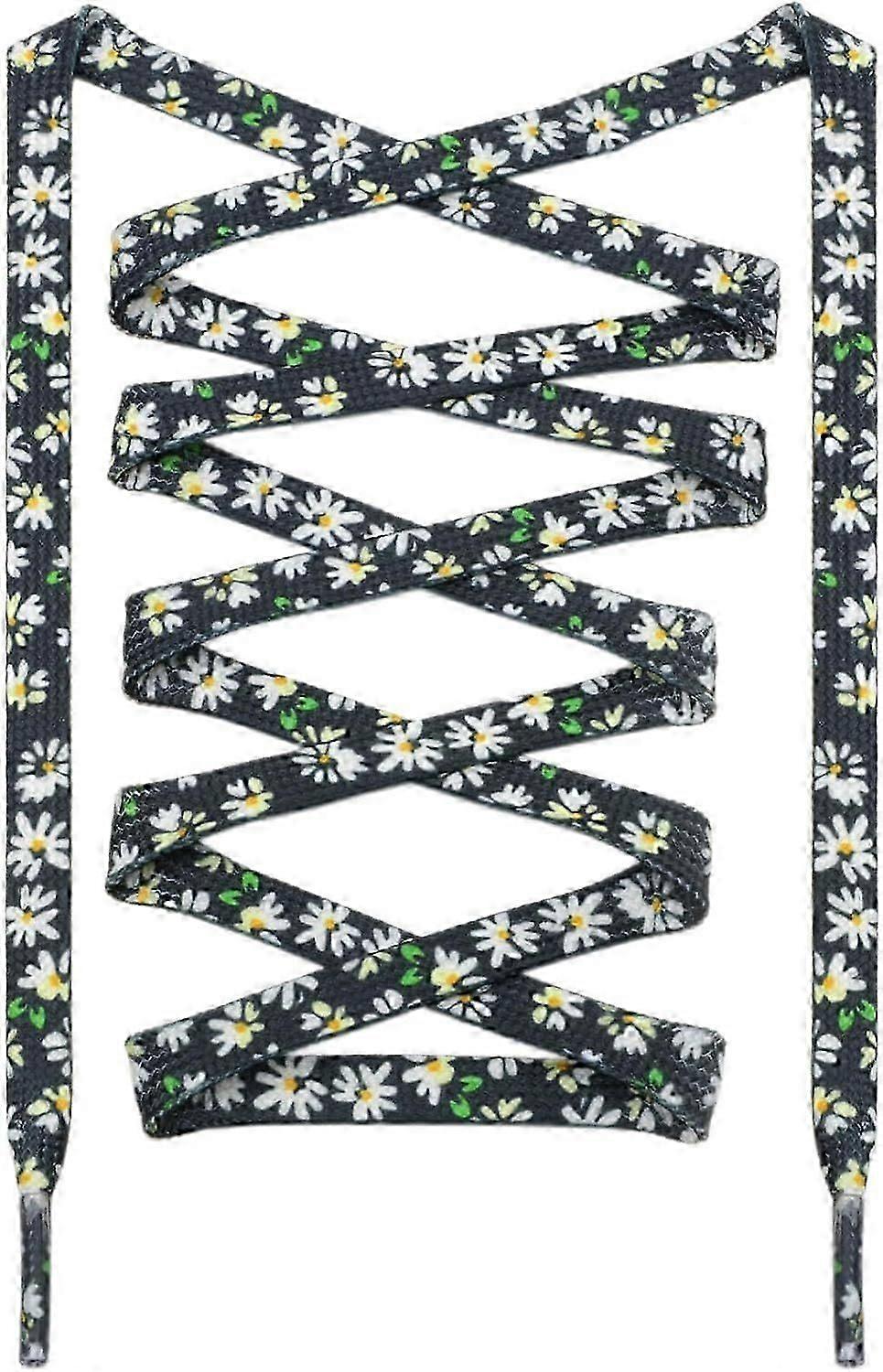Colored Printed Flat Shoelaces: 2 Pair Patterned Shoe Laces for Sneakers 19 Black White