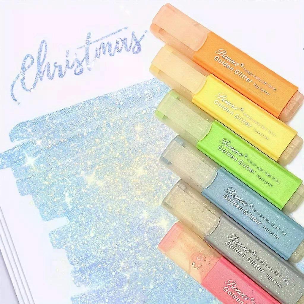 6pcs Shimmering Glitter Highlighter Marker Pens Pastel Highlighter Marker Pens Flexible Nebula Color