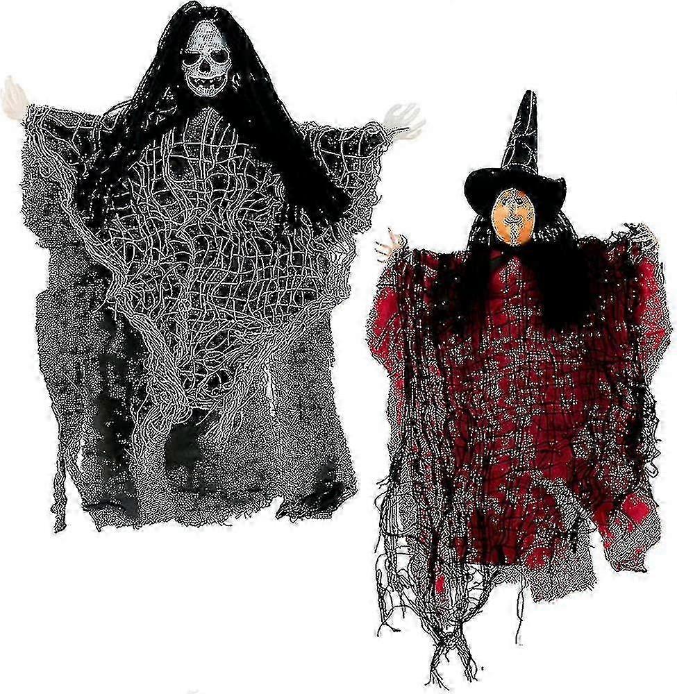 2-Piece Set of Black Halloween Hanging Ghost Decorations, Decorative Ghost Pendants for Halloween Decor.
