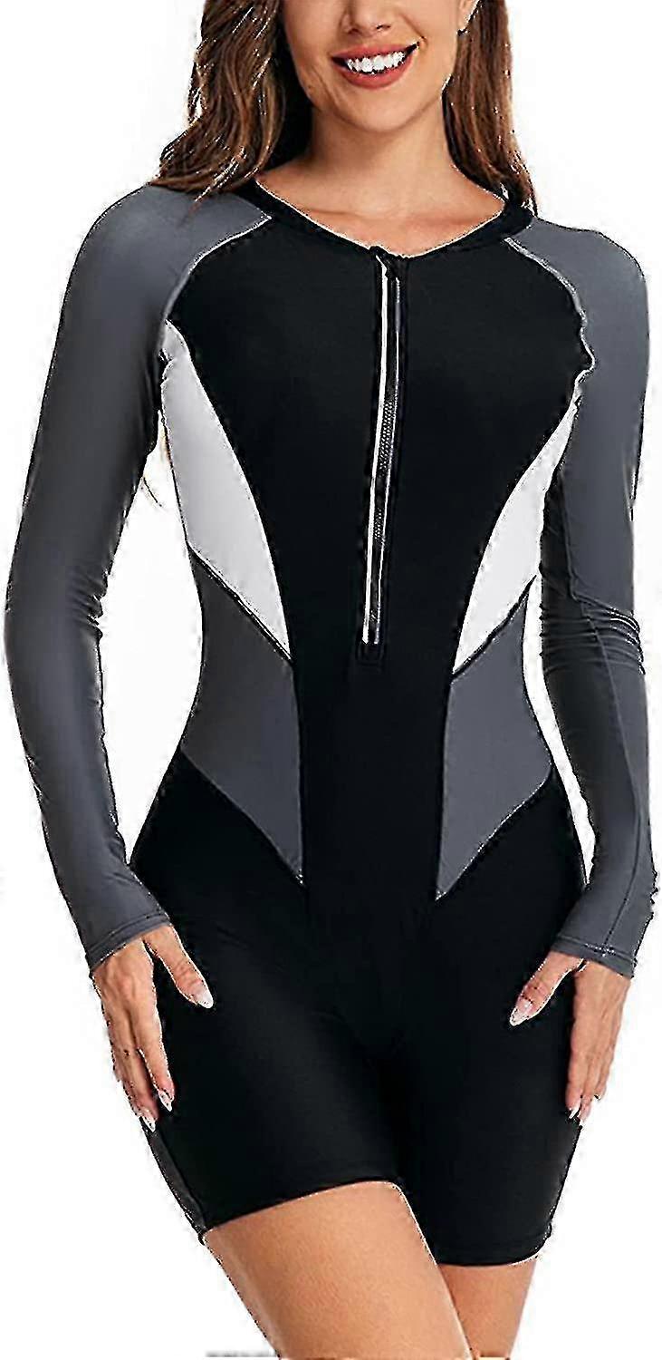 Women's Long Sleeve Rash Guard One Piece Swimsuit with Zip Front for Surfing Diving Swimming Athletic Wetsuit Swimwear Xinmu