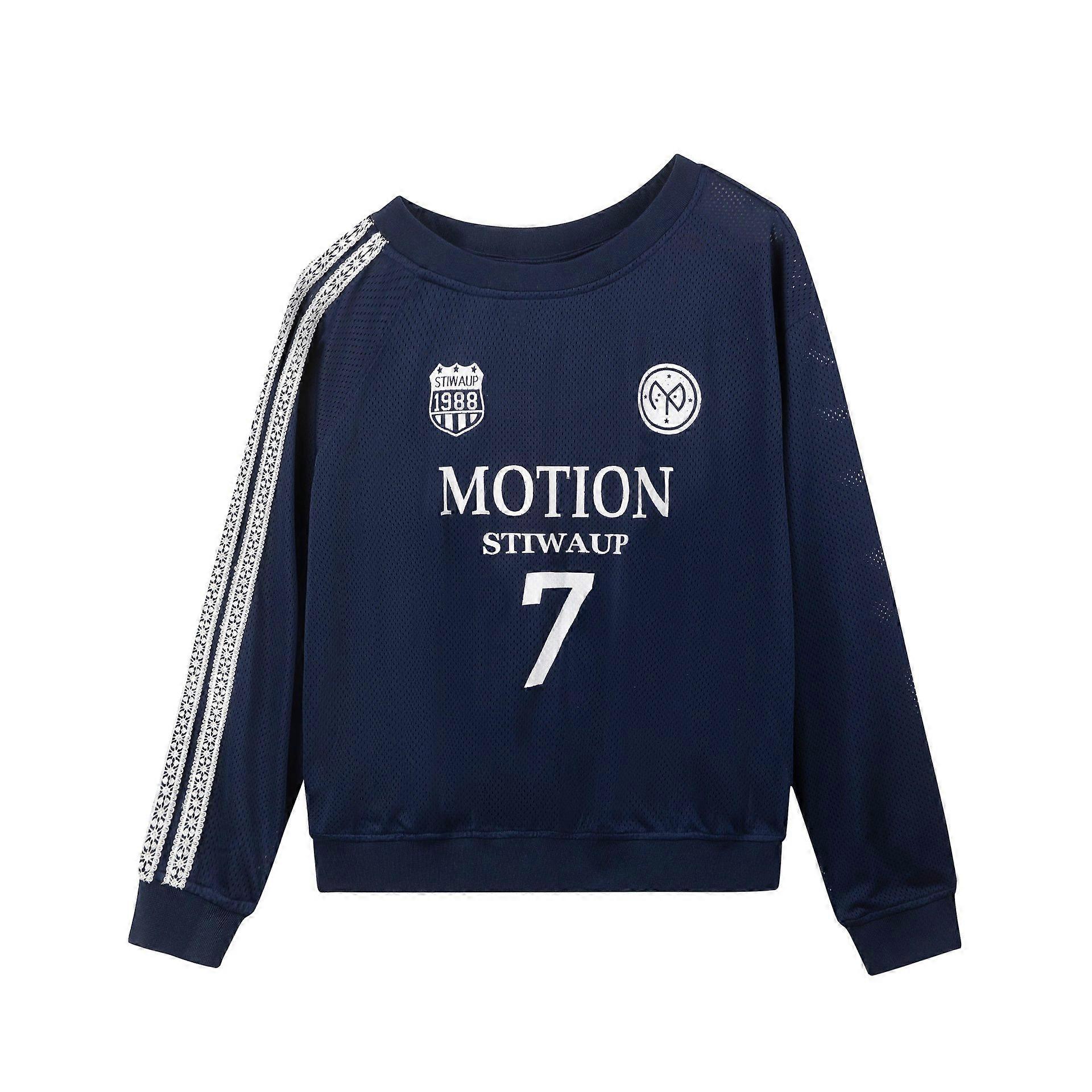 2025 New American Street Retro Letter Off Shoulder Sweatshirt Sleeve Fashion Top