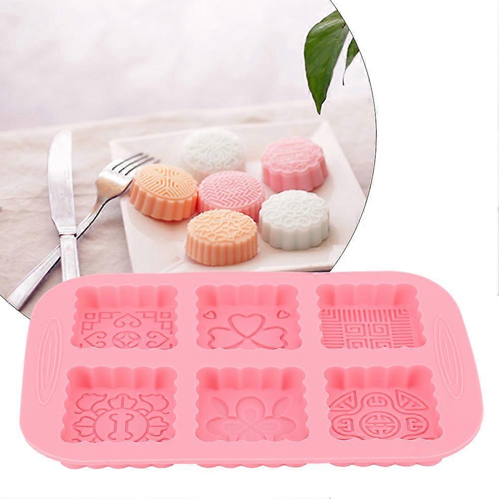 Food Grade Silicone Mooncake Mold 25x16x2cm Pink 6-Slot