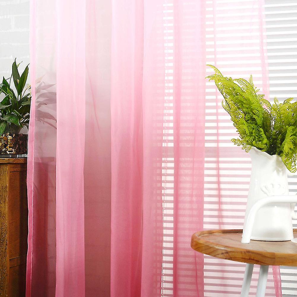 Gradient Sheer Rod Pocket Curtain 270x100cm Pink Bedroom Drape