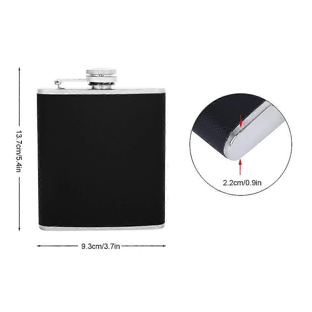 Stainless Steel 7oz Black Leather Hip Flask Set with Funnel & Cups