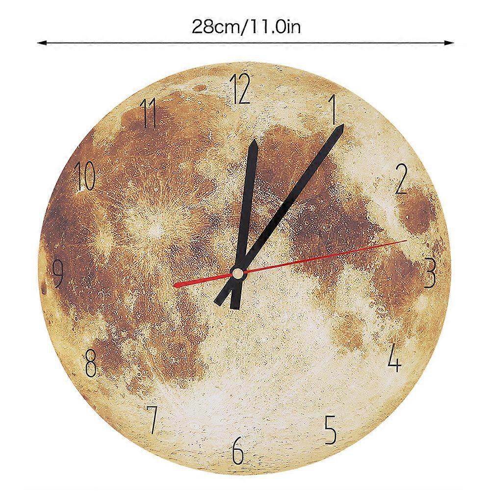 Moon Design Wall Clock 28cm Silent Wood Acrylic Decor